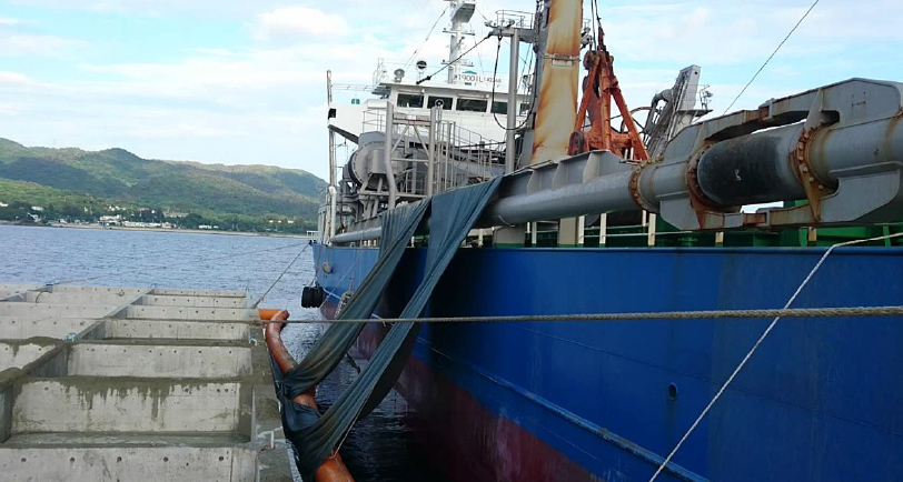 生コン材料のほか、埋立工事・人工ビーチ整備など、広範な用途に海砂を供給しています。